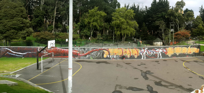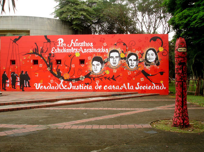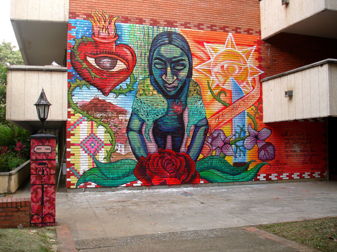 This mural was a collaboration between survivors and family members of the violence in the UP, students and Maintenance Personnel at the University (special thanks to James, Camilo, Mauricio and Carlos), and artists: Bounce, Makila, and Yoshi. It is a Trust Your Struggle Production sponsored by Reniciar.org.