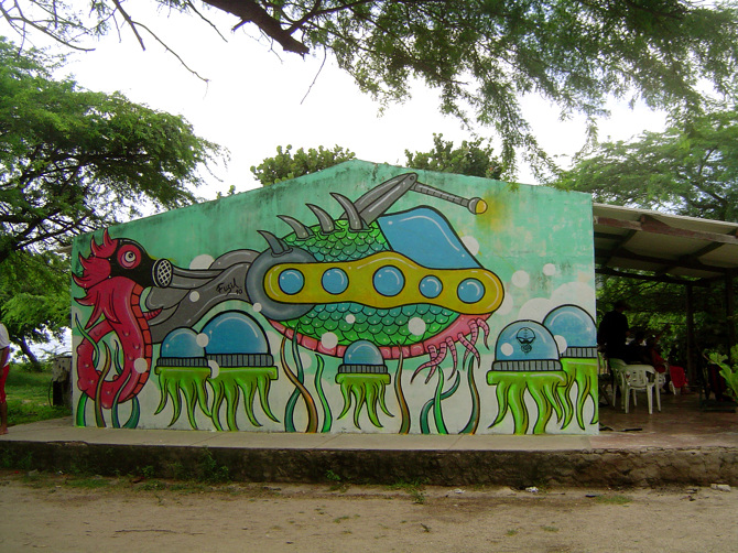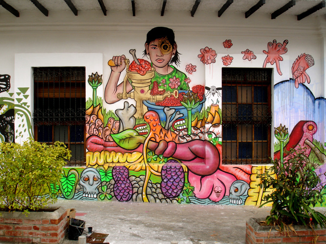 Here is the first installment of the Memoria Viva Mural project Yoshi has been putting together in Colombia. The project will consist of 4 more murals throughout Colombia.